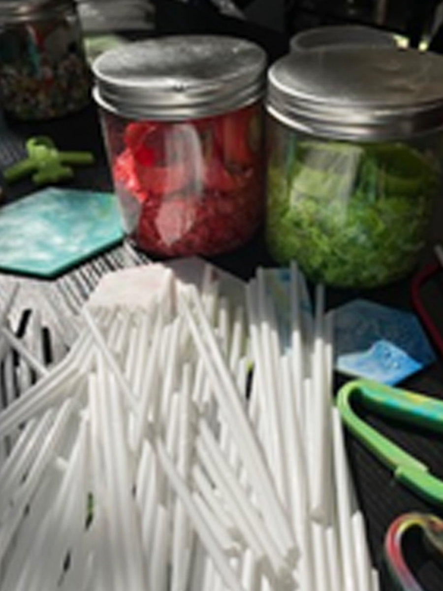 今回のアップサイクルの材料はストローとペットボトルキャップ