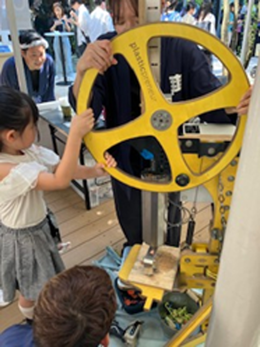 2025年9月20日~28日に渋谷区代官山で行われた「爽涼祭」で、地元小学生が集めた使用済みの給食ストロー約1000本をプラスチック製品にアップサイクルする体験イベントが行われました。
