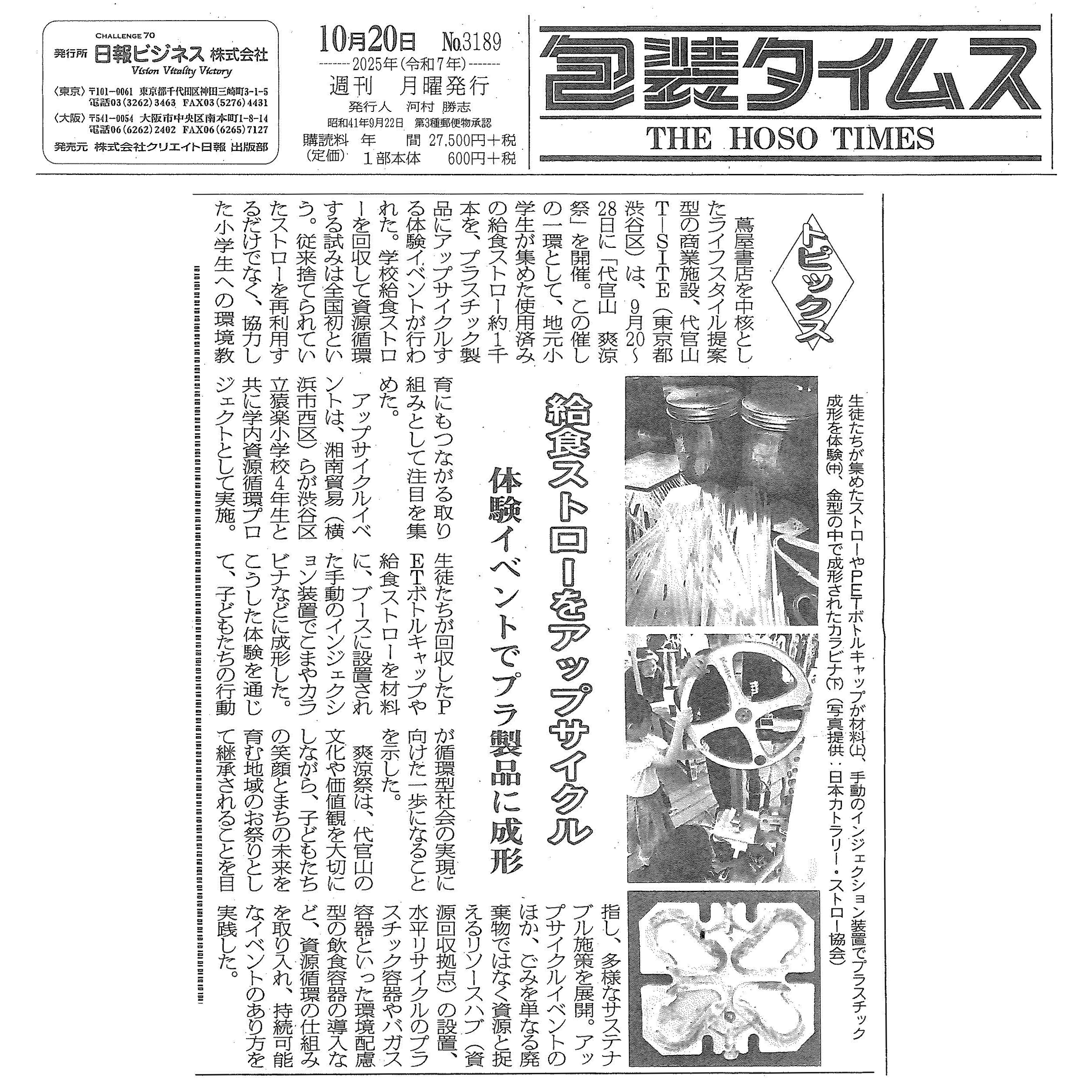 HOME > お知らせ > 包装タイムスに当協会のアップサイクルイベントが掲載されました 2025年10月23日 2025年10月25日 包装タイムス(No.3189)に当協会のアップサイクルイベントが掲載されました。